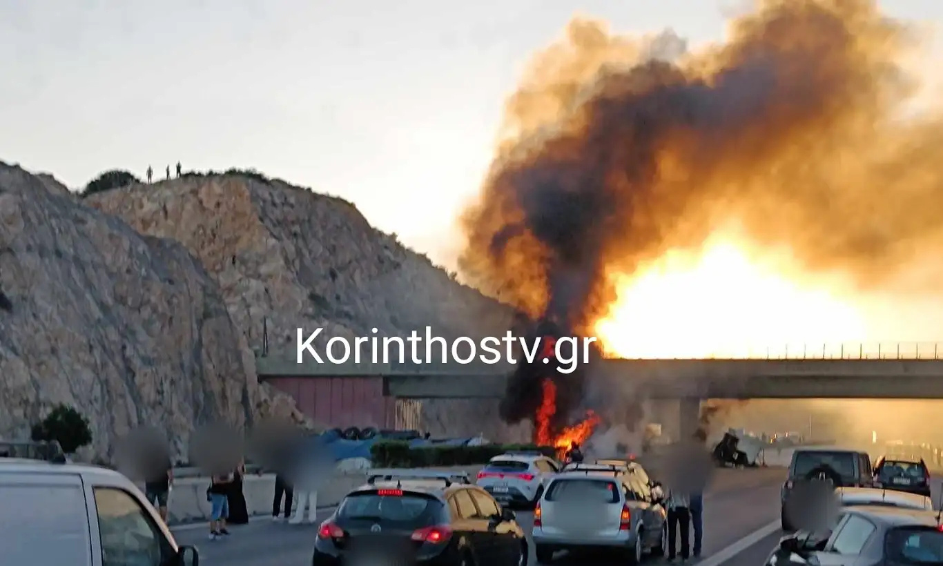 Τροχαίο με νταλίκα στα Μέγαρα: Το όχημα πήρε φωτιά, κλειστή η εθνική οδός Αθηνών Κορίνθου