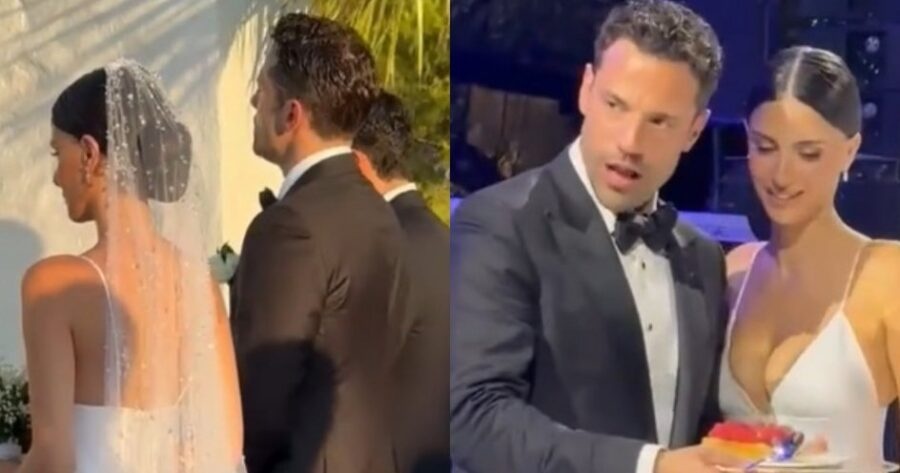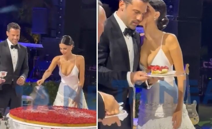 Γάμος Αργυρού – Νίκα: Η στιγμή της κοπής της τεράστιας γαμήλιας τούρτας – Βίντεο