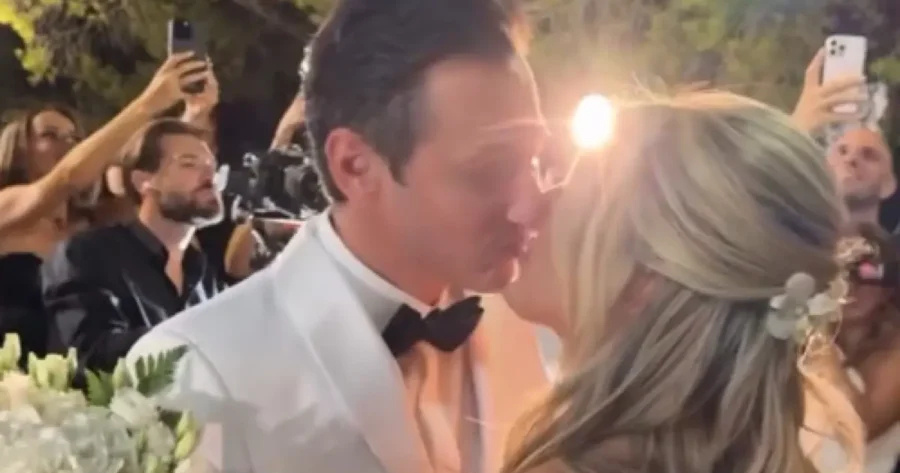 Παντρεύτηκαν ο Πάνος Καλίδης και η Λεάννα Μάρκογλου – Η άφιξη της νύφης και το φιλί