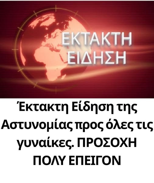 Έκτακτη ανακοίνωση της Αστυνομίας προς όλες τις γυναίκες. ΠΡΟΣΟΧΗ ΠΟΛΥ ΕΠΕΙΓΟΝ