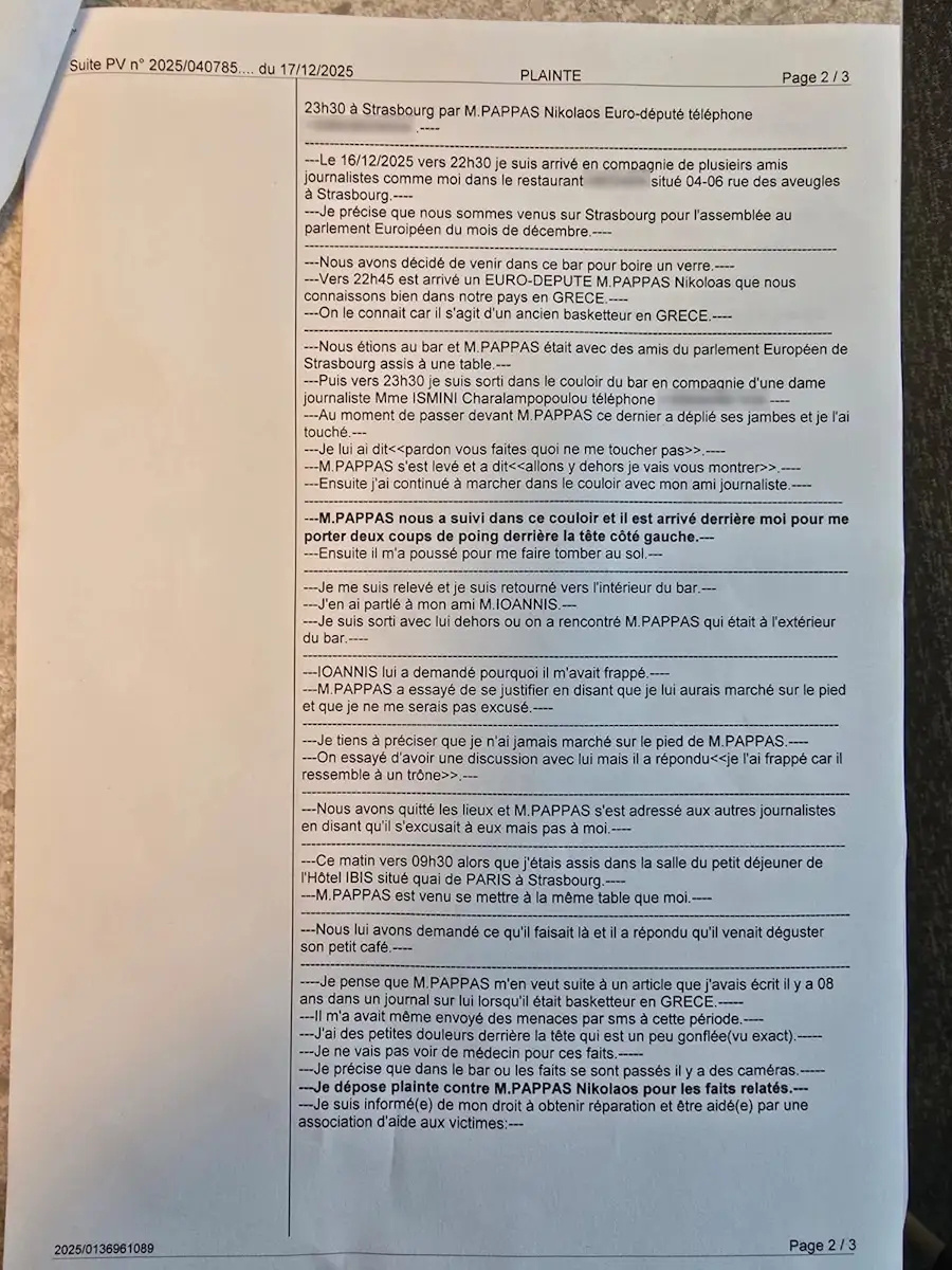 Μήνυση υπέβαλε ο δημοσιογράφος του News 24/7, Νίκος Γιαννόπουλος, κατά του ευρωβουλευτή Νίκου Παππά, έπειτα από επίθεση που δέχτηκε το βράδυ της Τρίτης (16.12.2025) στο Στρασβούργο.