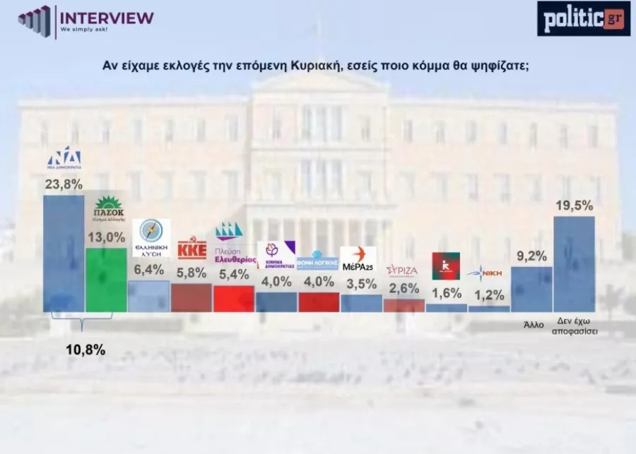 Άλλη μια δημοσκόπηση βγήκε τις τελευταίες μέρες, αυτή τη φορά από την Interview για την Political.