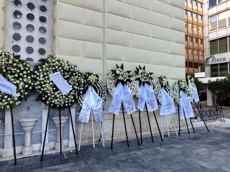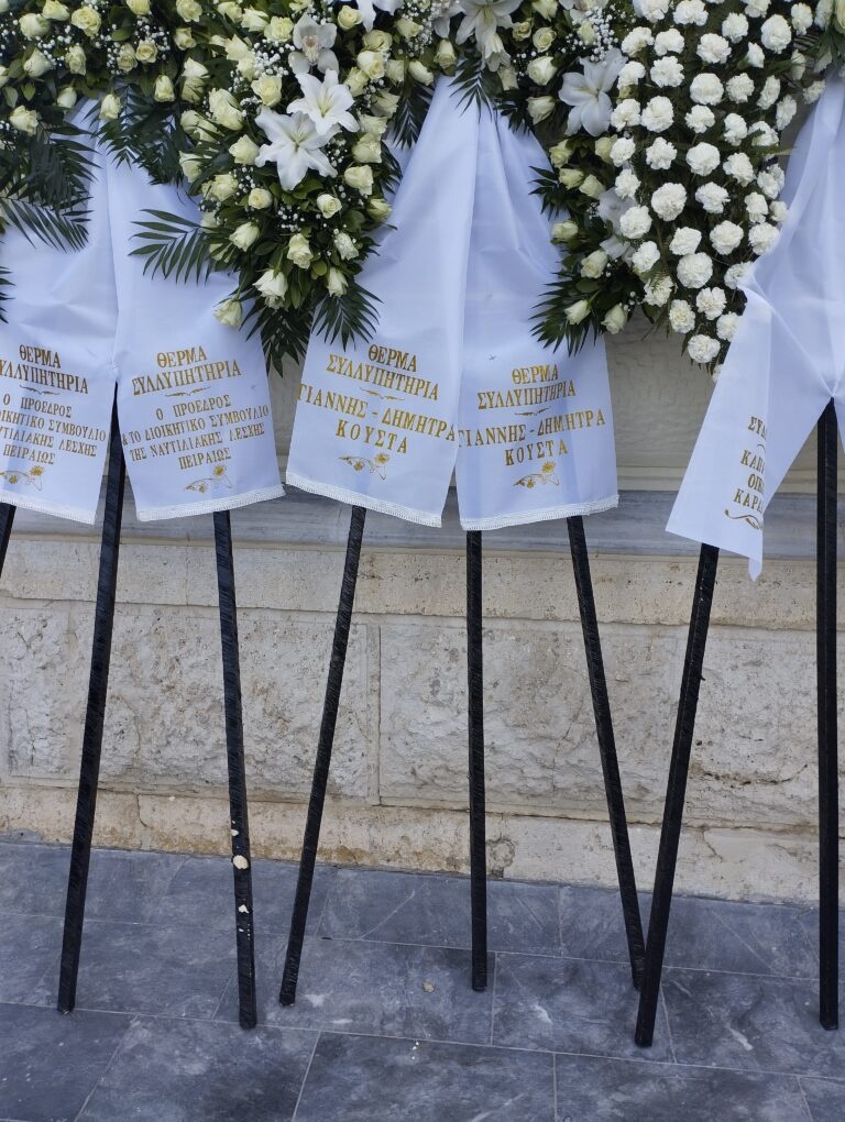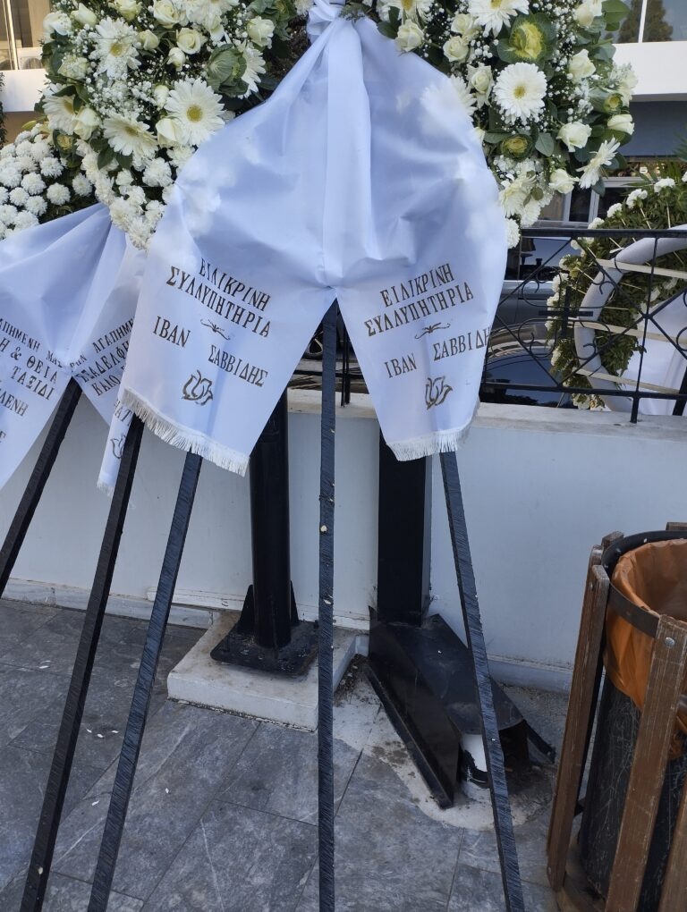 Ο Ιερός Ναός του Αγίου Νικολάου έχει πλημμυρίσει από στεφάνια από τον επιχειρηματικό και πολιτικό κόσμο της χώρας. Μεταξύ άλλων στεφάνια έχουν στείλει η ΠΑΕ ΠΑΟΚ, το Όραμα Ελπίδας, ο Ευάγγελος Μυτιληναίος, ο Βασίλης Κικίλιας, η Μάνια Λούβαρη, ο Γιώργος Λούβαρης, η Μαρία Μπεκατώρου, ο Θάνος Πλεύρης, η Capital ship man, η Alter ego media, ο Γιάννης και η Δέσποινα Βρέντζου, οι παίκτες του Ολυμπιακού, η Nottingham forest FC, ο Thrylos 24, ο Πρόεδρος της ΕΠΟ, Μάκης Γκαγκάτσης, ο Νίκος Αναστασιαδης τέως Πρόεδρος της Κυπριακής Δημοκρατίας, Νίκος Χριστοδουλίδης