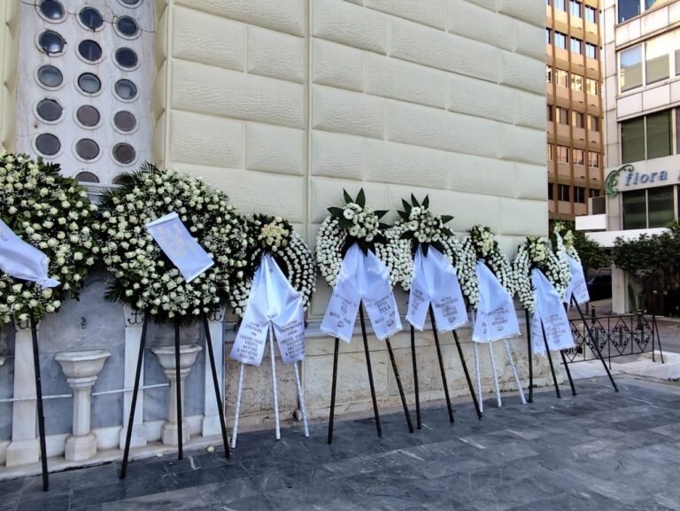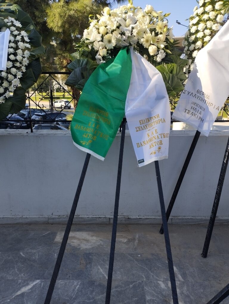Ο Ιερός Ναός του Αγίου Νικολάου έχει πλημμυρίσει από στεφάνια από τον επιχειρηματικό και πολιτικό κόσμο της χώρας. Μεταξύ άλλων στεφάνια έχουν στείλει η ΠΑΕ ΠΑΟΚ, το Όραμα Ελπίδας, ο Ευάγγελος Μυτιληναίος, ο Βασίλης Κικίλιας, η Μάνια Λούβαρη, ο Γιώργος Λούβαρης, η Μαρία Μπεκατώρου, ο Θάνος Πλεύρης, η Capital ship man, η Alter ego media, ο Γιάννης και η Δέσποινα Βρέντζου, οι παίκτες του Ολυμπιακού, η Nottingham forest FC, ο Thrylos 24, ο Πρόεδρος της ΕΠΟ, Μάκης Γκαγκάτσης, ο Νίκος Αναστασιαδης τέως Πρόεδρος της Κυπριακής Δημοκρατίας, Νίκος Χριστοδουλίδης