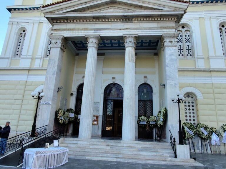 Η εξόδιος ακολουθία τελείται αυτή την ώρα στον Ιερό Ναό Αγίου Νικολάου Πειραιώς, με πλήθος κόσμου να έχει κατακλίσει τον προαύλιο χώρο της εκκλησίας για να αποχαιρετήσει την μεγάλη Πειραιώτισσα, σύζυγο του αείμνηστου επιχειρηματία Μιλτιάδη Μαρινάκη.