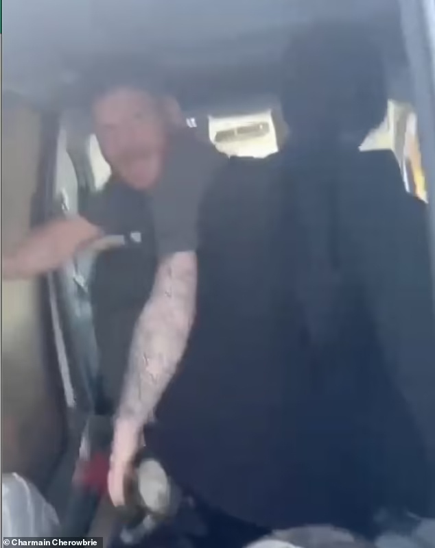 Λίγα δευτερόλεπτα αργότερα η «πέτρα το σκανδάλου» πηγαίνει στα μπροστά καθίσματα και φωνάζει «θα καλέσω την αστυνομία» προκειμένου να πείσει τη γυναίκα να σταματήσει το βίντεο.