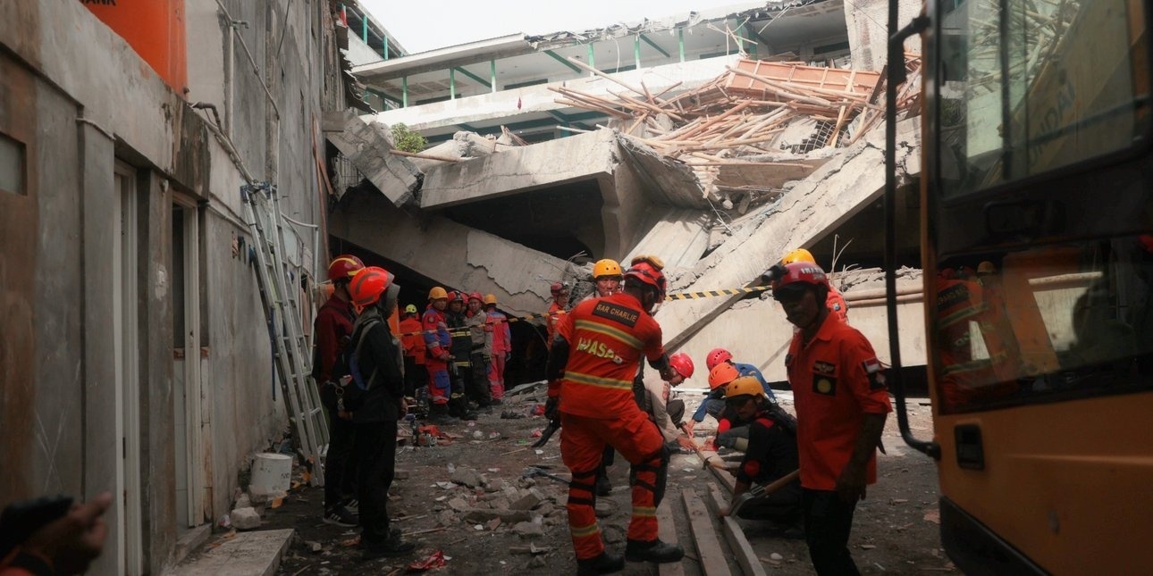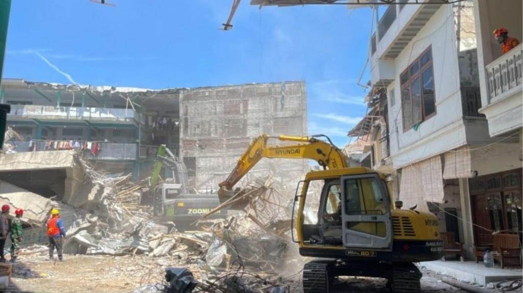 Μέρος πολυώροφου οικοτροφείου του ισλαμικού ιεροδιδασκαλείου αλ Χόζινι, στο Σιντοαρτζό, κοντά στη μεγάλη πόλη Σουραμπάγια, στην ανατολική Ιάβα, κατέρρευσε ξαφνικά την περασμένη Δευτέρα, καθώς σπουδαστές συγκεντρώνονταν για την απογευματινή προσευχή.