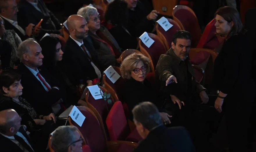 Μάλιστα πολλοί φώναζαν «να τος, να τος ο πρωθυπουργός» κατά την είσοδο του Αλέξη Τσίπρα στο θέατρο.