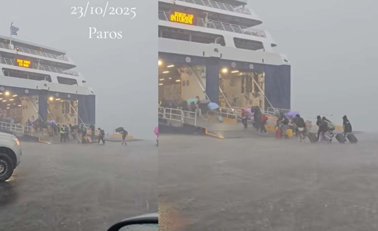 Δραματική επιβίβαση στην Πάρο: Επιβάτες και πλήρωμα πλοίου «παλεύουν» κάτω από απίστευτη καταιγίδα
