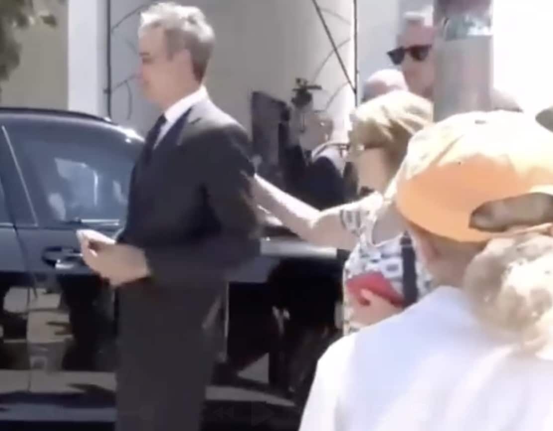 Λίγο πριν εισέλθει στην λιμουζίνα του, μετά την ολοκλήρωση της κηδείας και της ταφής της Λένας Σαμαρά, ο κ. Μητσοτάκης, συνομίλησε με μία ξανθιά κυρία, οπότε και της χάρισε το γνωστό, σχεδόν μόνιμο, χαμόγελό του, εν είδη αποχαιρετισμού.