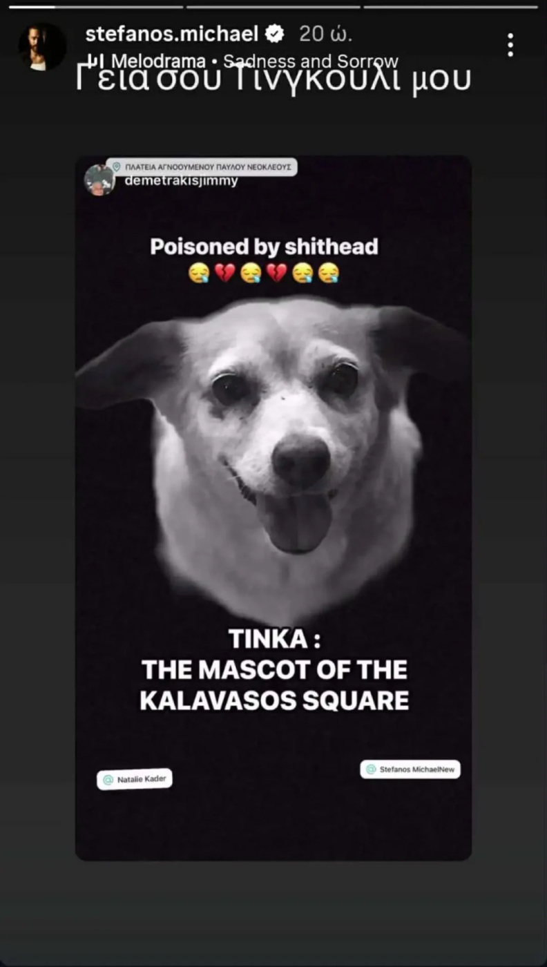 Δύσκολες ώρες για τον Στέφανο Μιχαήλ και τη σύζυγό του, Νάταλι Κάτερ, καθώς έχασαν τη σκυλίτσα τους από φόλα, τη μικρή Τίνκα, που ουσιαστικά αποτελούσε μέλος της οικογένειάς τους εδώ και δυόμισι χρόνια και μασκότ στην Καλαβασό, όπου ζουν μόνιμα.