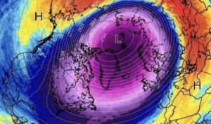 Ο Πολικός Στρόβιλος είναι ένα τεράστιο σύστημα ανέμων που περιστρέφεται γύρω από τους πόλους, «παγιδεύοντας» τον ψυχρό αέρα στις πολικές περιοχές. Όταν ο στρόβιλος είναι ισχυρός, διατηρεί τη θερμοκρασιακή ισορροπία, κρατώντας το ψύχος μακριά από τις μεσαίες γεωγραφικές ζώνες.