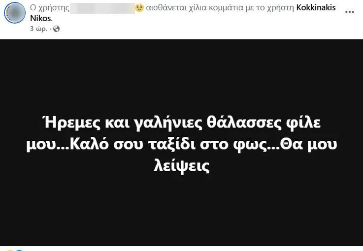 Ο άτυχος άνδρας, ήταν πατέρας δύο παιδιών και πολύ αγαπητό πρόσωπο στην ευρύτερη περιοχή. Οι συγγενείς και οι φίλοι του είναι σε κατάσταση σοκ καθώς ακόμη δεν μπορούν να πιστέψουν πώς χάθηκε τόσο άδικα.