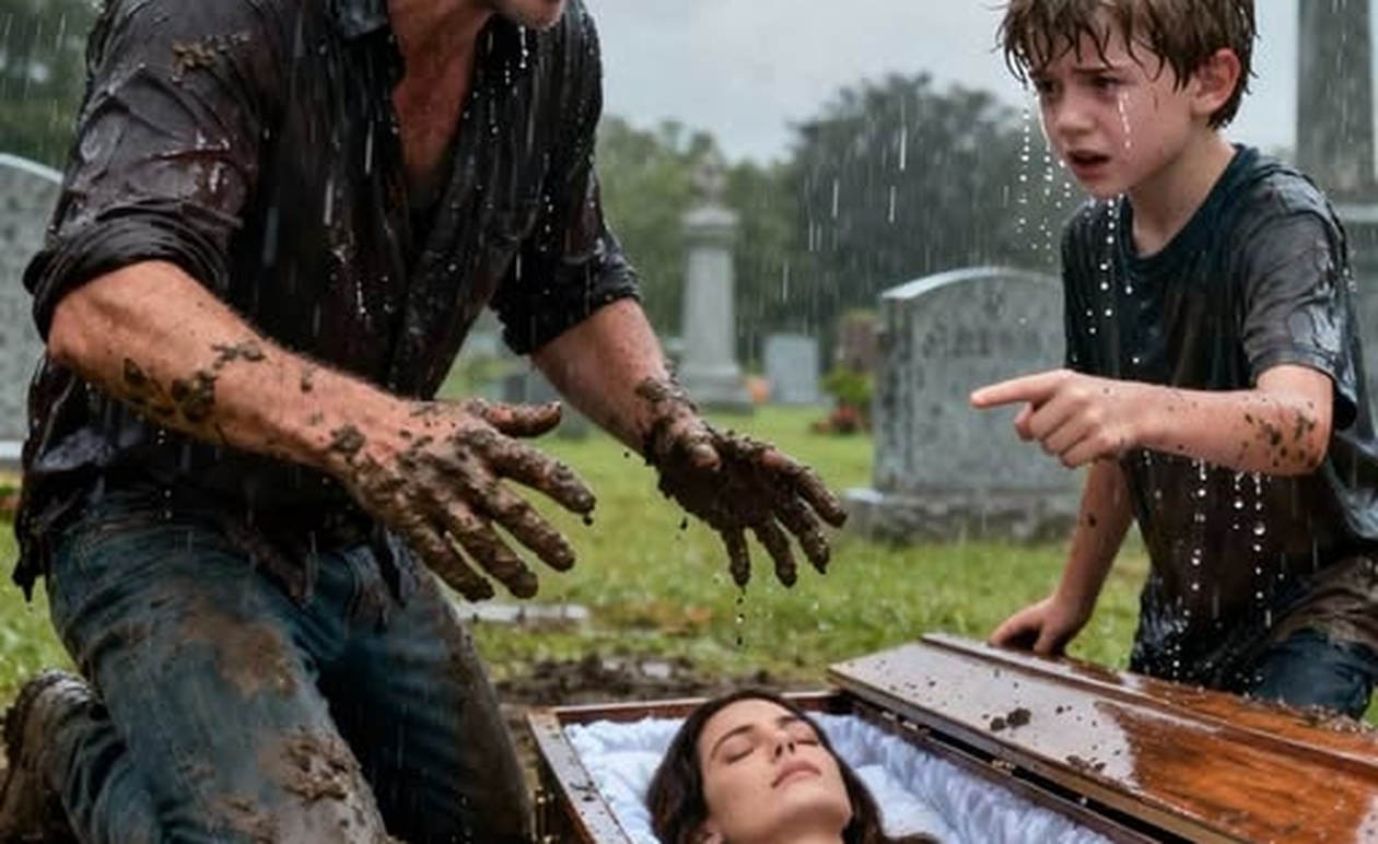 Μόλις μία ώρα μετά την ταφή, ένα 7χρονο αγόρι επέμενε να ξεθάψει ο πατέρας του τον τάφο της μητέρας του — και τη στιγμή που άνοιξε το καπάκι του φέρετρου, όλοι κράτησαν την ανάσα τους…