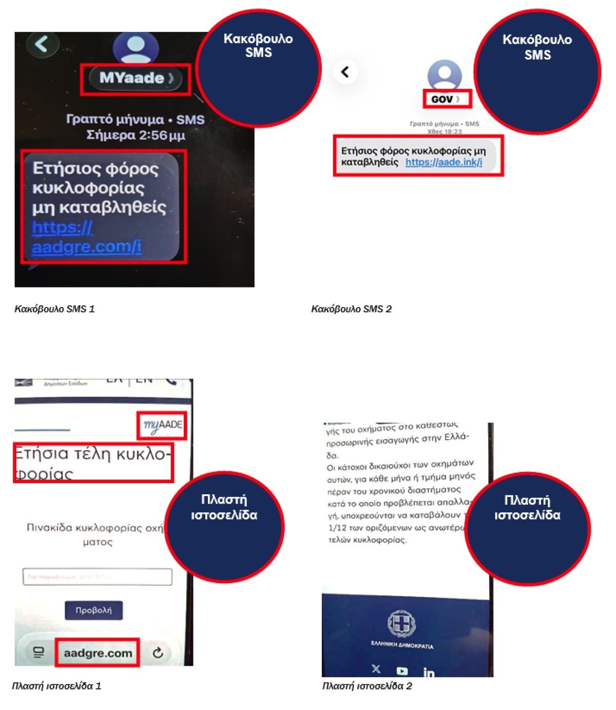 Κοινό χαρακτηριστικό όλων είναι ο σύνδεσμος-παγίδα, που οδηγεί σε σελίδες σχεδιασμένες να μοιάζουν με επίσημες, αλλά στην πραγματικότητα συλλέγουν δεδομένα ή εγκαθιστούν κακόβουλο λογισμικό.