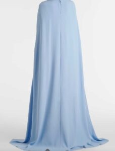 Το “Natasha” Satin Cape Gown του οίκου Markarian, είναι ένα couture-εμπνευσμένο σχέδιο που εκπέμπει σεβασμό στην επίσημη περίσταση αλλά και σύγχρονη αισθητική.