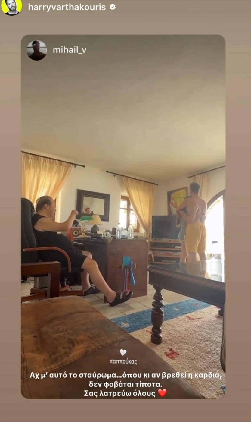 Ακολούθησε άλλη μία ανάρτηση, όπου ο Χάρης και οι κόρες του είναι στο σπίτι του Γιάννη Πάριου και ο σπουδαίος τραγουδιστής, καθισμένος λίγο πιο δίπλα σταυρώνει τα αγαπημένα του πρόσωπα. “Παππούκας. Αχ με αυτό το σταύρωμα…όπου και αν βρεθεί η καρδιά δεν φοβάται τίποτα. Σας λατρεύω όλους”, έγραφε η λεζάντα της ανάρτησης.