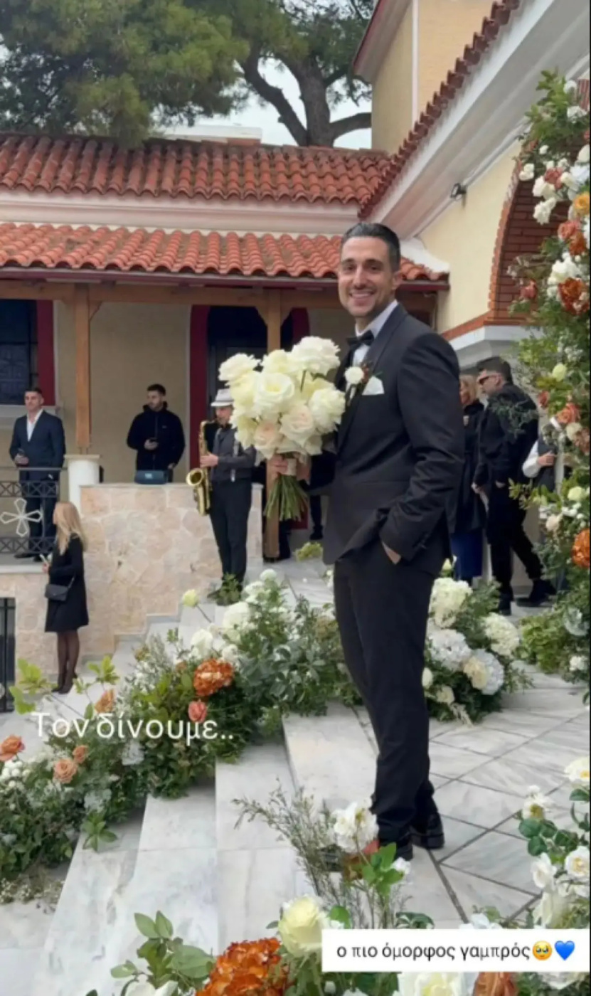 Στις φωτογραφίες βλέπουμε τον γαμπρό να περιμένει τη νύφη να φτάσει στην εκκλησία, η οποία είναι όμορφα διακοσμημένη με λευκά, ροζ, και πορτοκαλί τριαντάφυλλα. Η νύφη εντυπωσίασε μέσα στο παραμυθένιο νυφικό της, το οποίο αποπνέει ρομαντισμό. Αξίζει να σημειώσουμε ότι η Μαριλένα Ρουμελιώτη βρίσκεται στον 5ο μήνα της εγκυμοσύνης της.