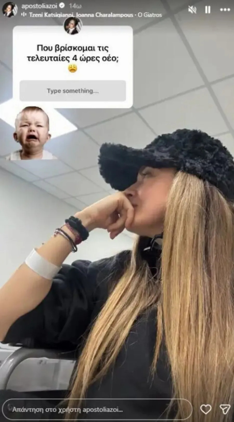Μία σοβαρή περιπέτεια με την υγεία της πέρασε το απόγευμα της Παρασκευής 3/4/2026 η γνωστή και αγαπημένη τραγουδίστρια Αποστολία Ζώη. Την είδηση την έκανε η ίδια γνωστή μέσα από τον προσωπικό της λογαριασμό στο Instagram. Όλες οι τελευταίες εξελίξεις για την υγεία της.