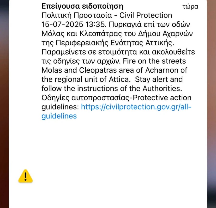 Σύμφωνα με το 112, το οποίο ήχησε στα κινητά των κατοίκων, η πυρκαγιά είναι επί των οδών Μόλας και Κλεοπάτρας.