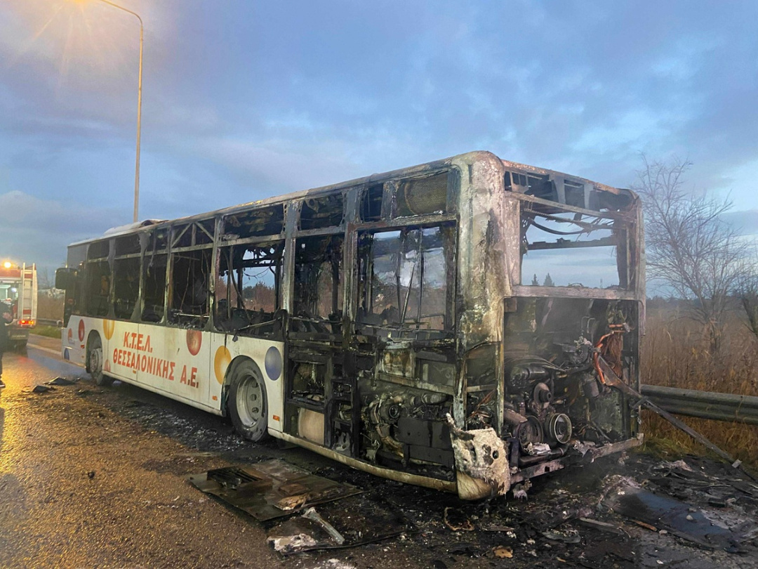 Στο σημείο έσπευσαν δυνάμεις της Πυροσβεστικής για την κατάσβεση της φωτιάς ενώ το λεωφορείο υπέστη εκτεταμένες υλικές ζημιές.
