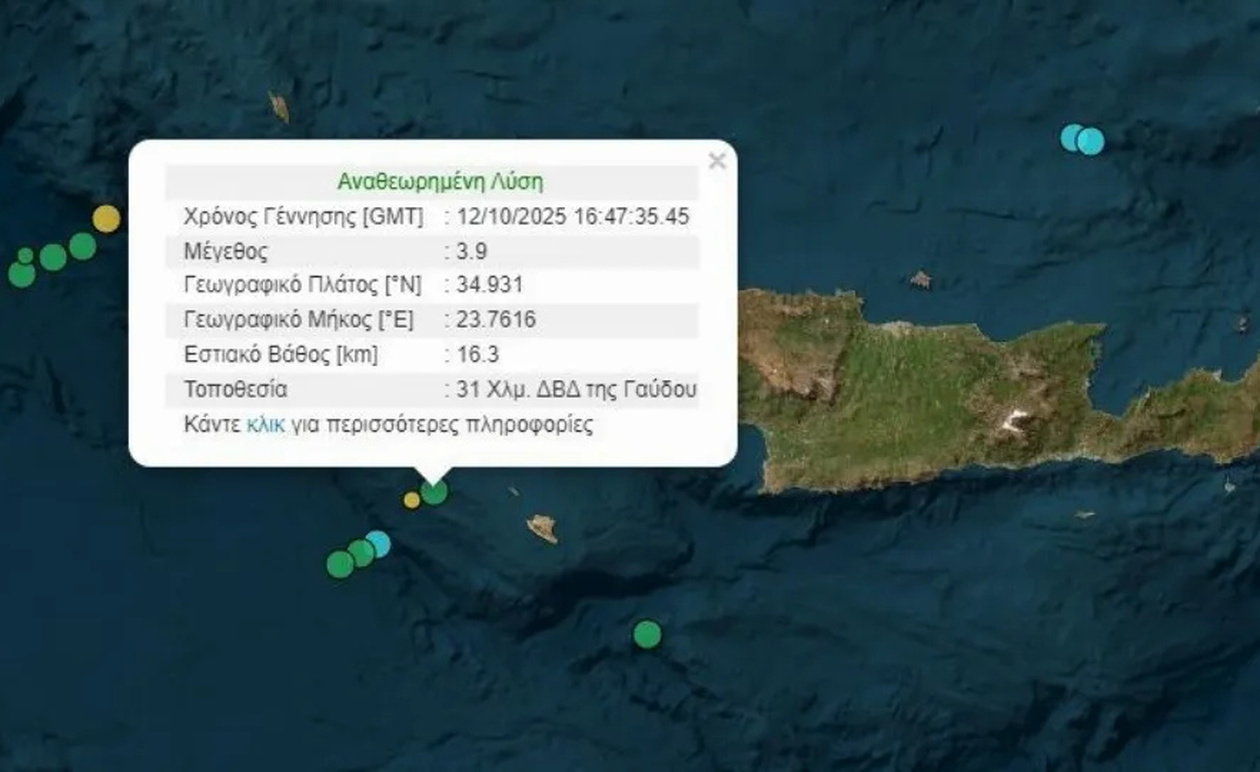 Να θυμίσουμε ότι σήμερα Κυριακή 12/10 πριν λίγη ώρα είχε γίνει σεισμός κοντά στην Κρήτη.