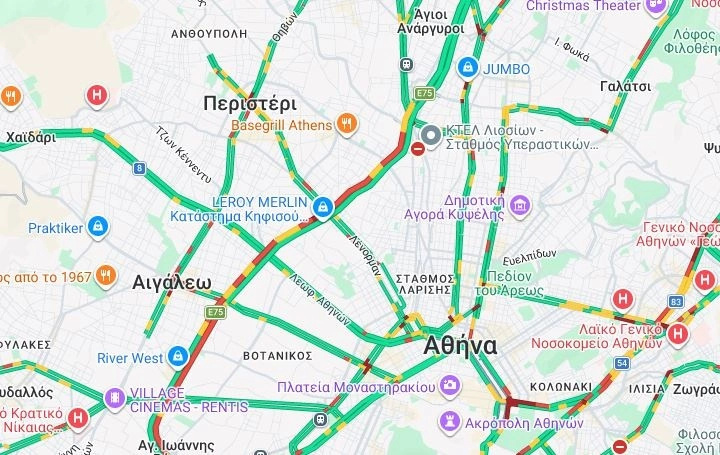 Στην κάθοδο υπάρχουν σημαντικές καθυστερήσεις από το ύψος των Σεπολίων έως το Αιγάλεω.