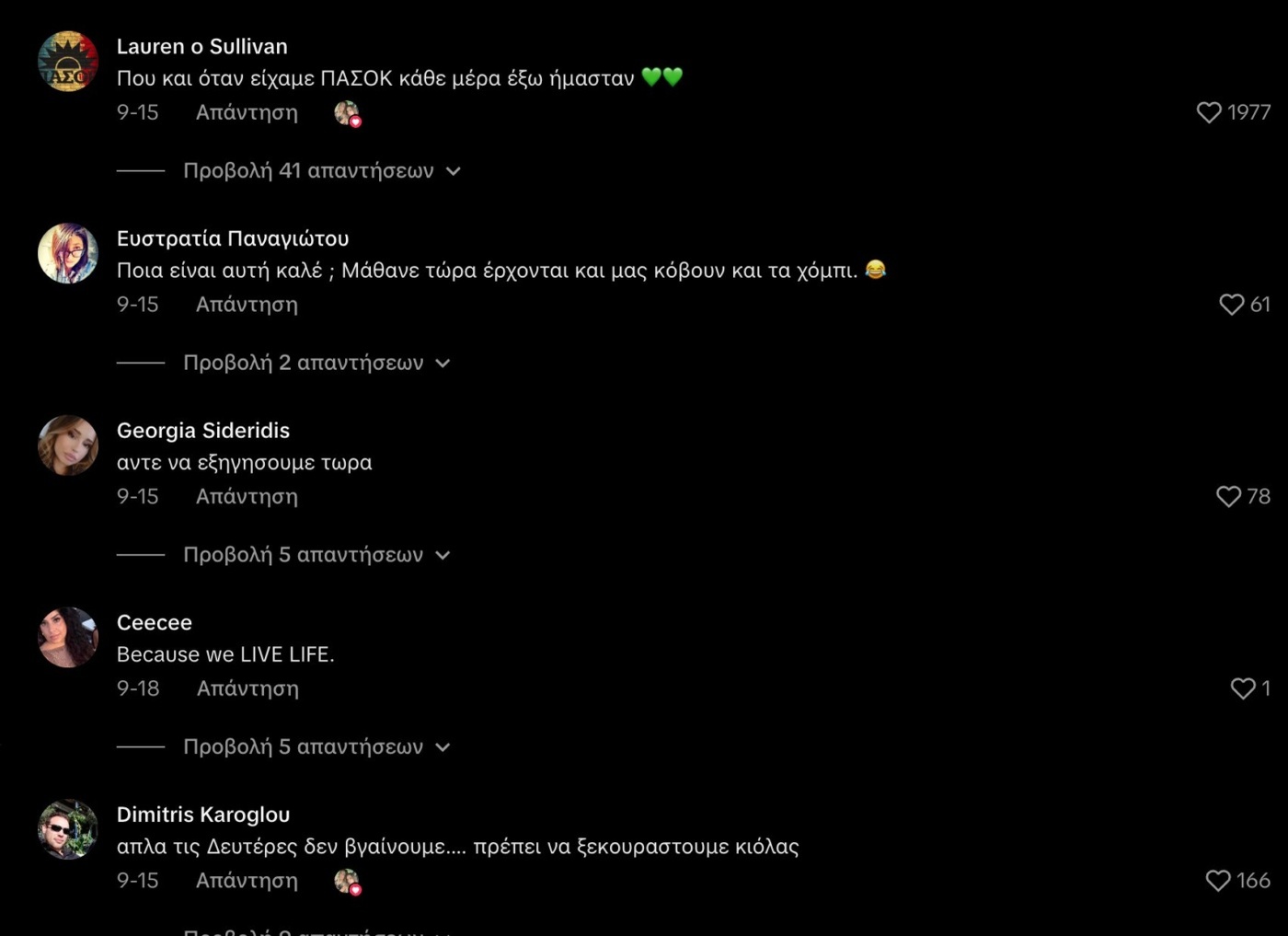 «Είμαι Ελληνίδα και απορώ κι εγώ με αυτό», ενώ άλλοι τόνισαν πως «στην Ελλάδα το Σαββατοκύριακο τελειώνει μόνο τα ξημερώματα της Δευτέρας».