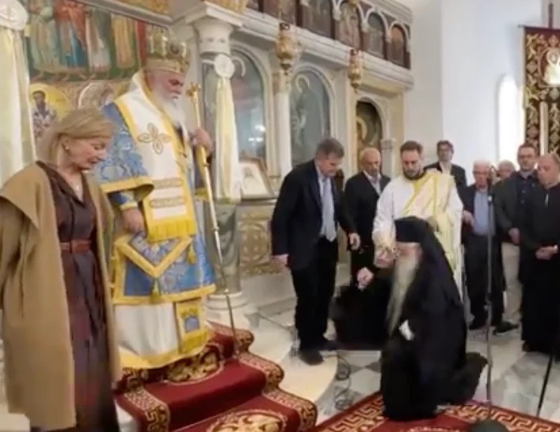 Για όσους γνωρίζουν τους κώδικες της Εκκλησίας, η εικόνα αυτή γεννά απορίες. Παραδοσιακά, οι ιεράρχες γονατίζουν μόνο μπροστά στις εικόνες και σε ιερά σύμβολα, όχι μπροστά σε πρόσωπα, όσο ευεργετικά κι αν έχουν σταθεί. Το γεγονός έχει προκαλέσει συζητήσεις, με αρκετούς να θεωρούν πως πρόκειται για υπερβολή, ενώ άλλοι το βλέπουν ως μια αυθόρμητη ένδειξη σεβασμού.