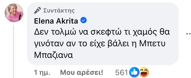 Το αιχμηρό σχόλιο για την Μπέτυ Μπαζιάνα