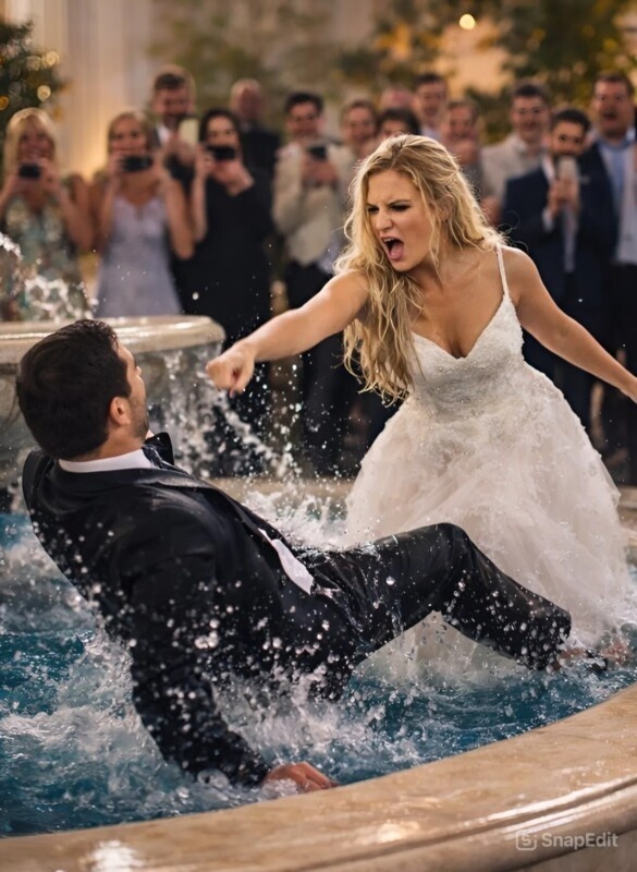 Κατά τη διάρκεια του γάμου, ο γαμπρός έσπρωξε επίτηδες τη νύφη μέσα στο σιντριβάνι, επαναλαμβάνοντας ότι ήταν απλώς ένα αστείο· οι καλεσμένοι γελούσαν και τραβούσαν βίντεο με τα κινητά τους, ενώ η νύφη έκλαιγε, αλλά εκείνη τη στιγμή συνέβη κάτι που άφησε όλους σοκαρισμένους 😮😱