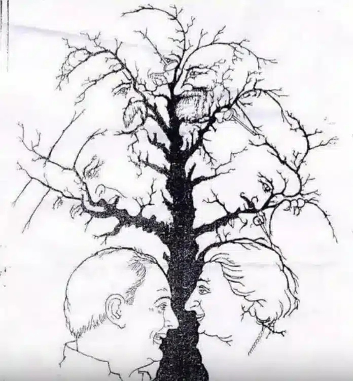 Τα δύο πρόσωπα στο κάτω μέρος του δέντρου είναι εμφανή. Αν εντοπίσετε ένα ή δύο ακόμη πρόσωπα, θα μπορούσε να είναι σημάδι προβλημάτων μνήμης.