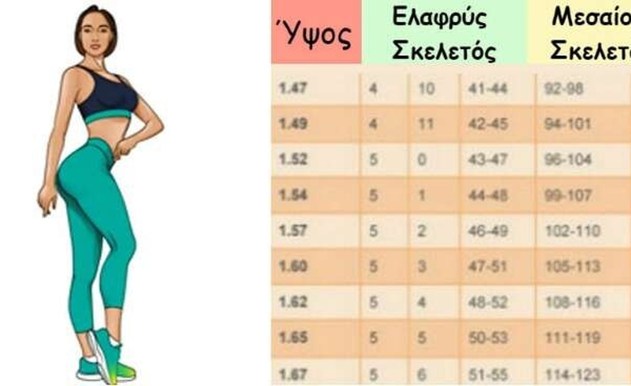 Πίνακας που δείχνει ποιο είναι το ιδανικό βάρος με βάση το ύψος του κάθε ανθρώπου φέρνει νέα δεδομένα. Όπως είναι γνωστό το ιδανικό βάρος εξαρτάται από το ύψος, τη μυική μάζα και το βάρος από τα κόκαλα του καθενός.