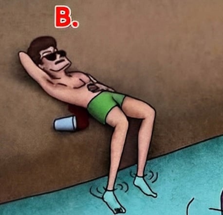 Τέλος, ας ρίξουμε μια ματιά στο άτομο Γ. Αν το δείτε προσεκτικά, το άτομο κρατάει ένα φορητό υπολογιστή στο χέρι του και βρίσκεται στο νερό. Επίσης, φαίνεται να βρίσκεται σε υποσυνείδητη κατάσταση.