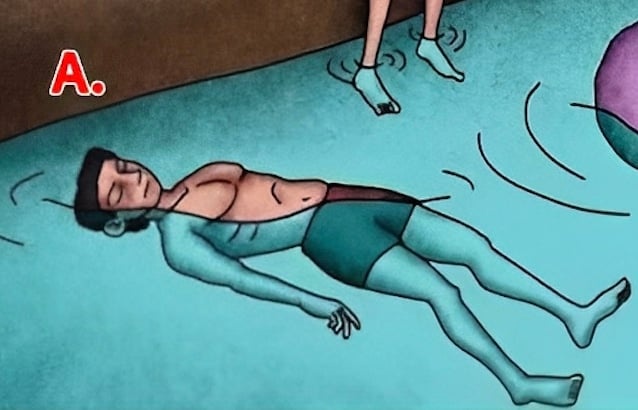 Τις αρχικές 1 έως 2 ημέρες, ένα νεκρό σώμα βυθίζεται κάτω από το νερό και στη συνέχεια αρχίζει να επιπλέει. Έτσι, το άτομο Α δεν είναι νεκρό, καθώς δεν έχει νόημα 2 άτομα (Β & Γ) να έρθουν στην πισίνα για να χαλαρώσουν με ένα νεκρό σώμα να επιπλέει μέσα.