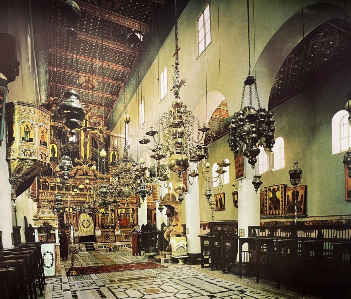 Άποψη του εσωτερικού της Ιεράς Μονής της Αγίας Αικατερίνης στο όρος Σινά. Πηγή εικόνας: Έκδοση της Εθνικής Τράπεζας της Ελλάδος (1967)