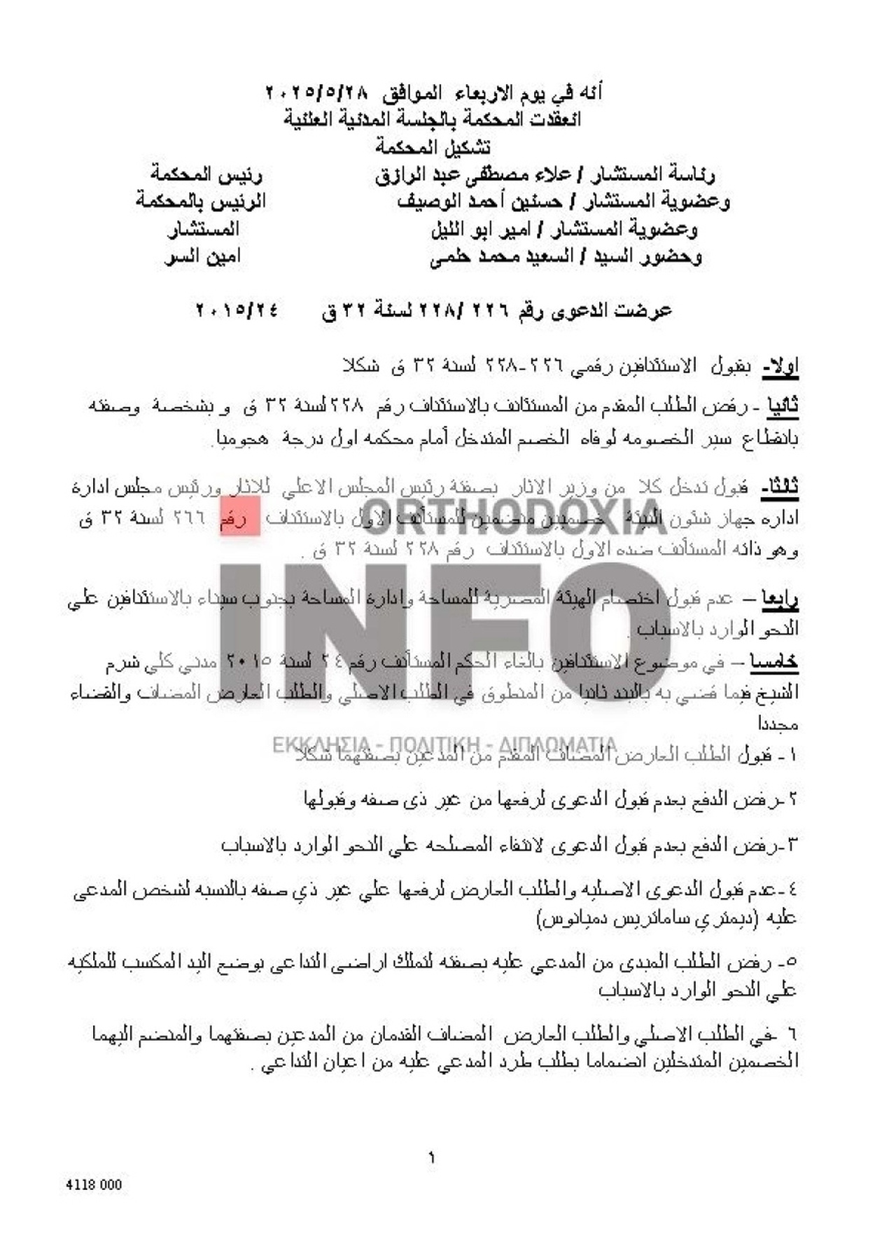 «Ύστερα από την χθεσινή σκανδαλώδη απόφαση βίαιης καταπάτησης των ανθρωπίνων και δη των θρησκευτικών ελευθεριών, που εξέδωσαν οι δικαστικές αρχές της Αιγύπτου, το παλαιότερο παγκοσμίως Ορθόδοξο Χριστιανικό Μνημείο, η Ιερά Μονή της Αγίας Αικατερίνης του Θεοβάδιστου Όρους Σινά, εισέρχεται σε μία μεγάλη δοκιμασία, που παραπέμπει σε άλλες σκοτεινές εποχές…