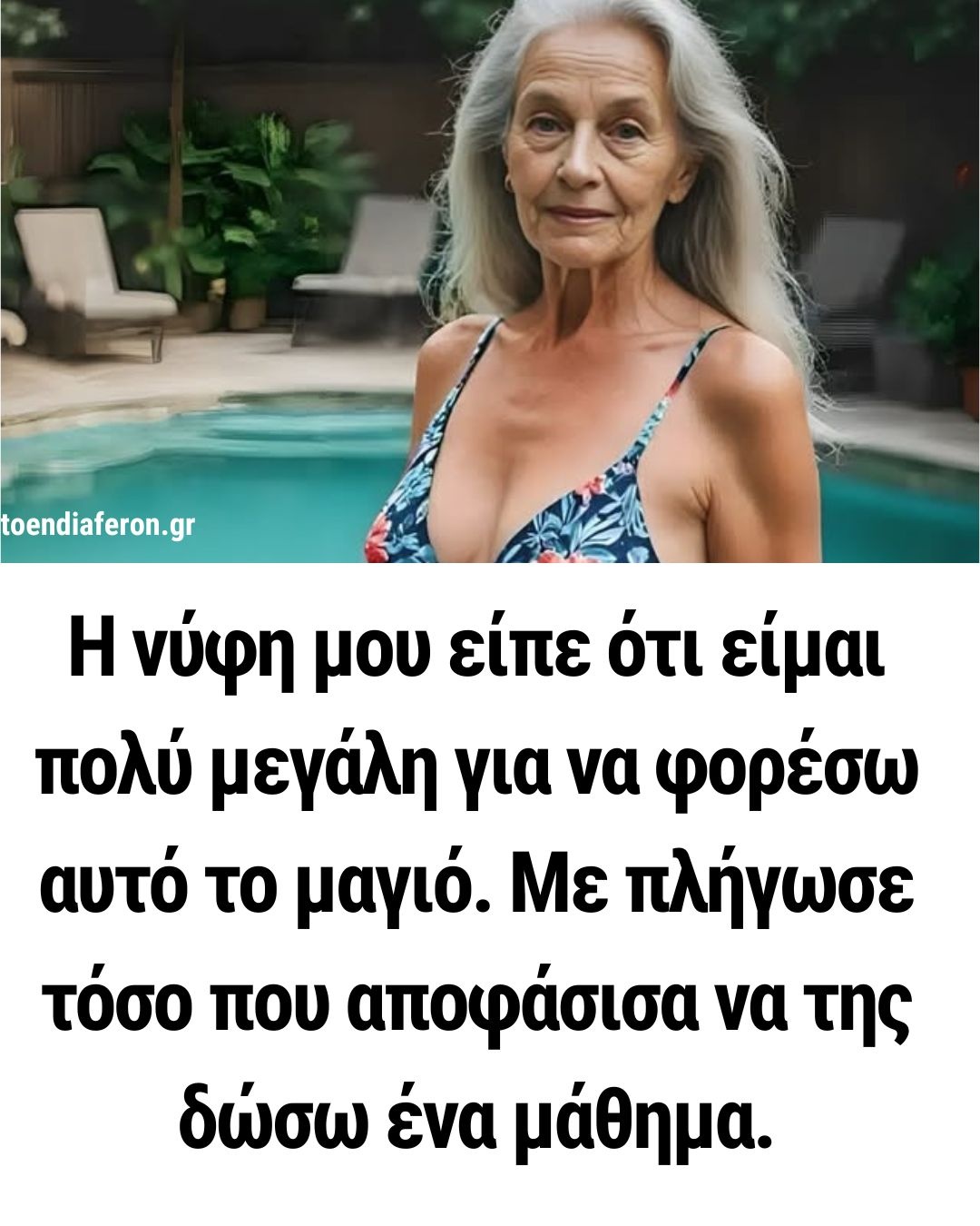 Η νύφη μου είπε ότι είμαι πολύ μεγάλη για να φορέσω αυτό το μαγιό. Με πλήγωσε τόσο που αποφάσισα να της δώσω ένα μάθημα.