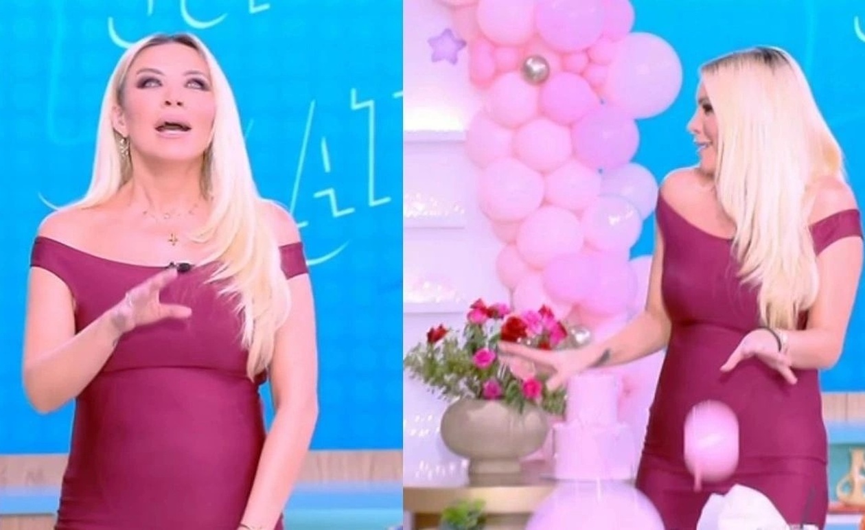 Καινούργιου: Η 1η εμφάνιση στην εκπομπή μετά την ανακοίνωση εγκυμοσύνης, το κολλητό ροζ φόρεμα, η κοιλίτσα και τα μπαλόνια – Περιμένει κορίτσι