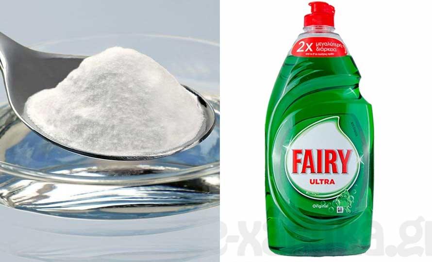 Δεύτερος τρόπος: Μαγειρική σόδα και απορρυπαντικό πιάτων