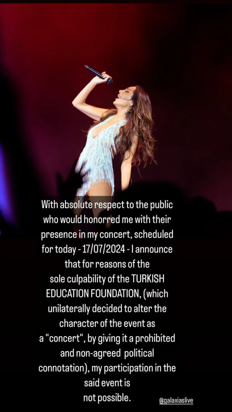 Η κίνηση της τραγουδίστριας να ακυρώσει τη συναυλία της στη Σμύρνη, επειδή αναρτήθηκε αφίσα του Κεμάλ Ατατούρκ στον χώρο της εκδήλωσης εξόργισε ορισμένους Τούρκους, οι οποίοι εξέφρασαν τον έντονο θυμό και τη δυσαρέσκειά τους αφήνοντας υβριστικά και επιθετικά σχόλια κάτω από αναρτήσεις της.